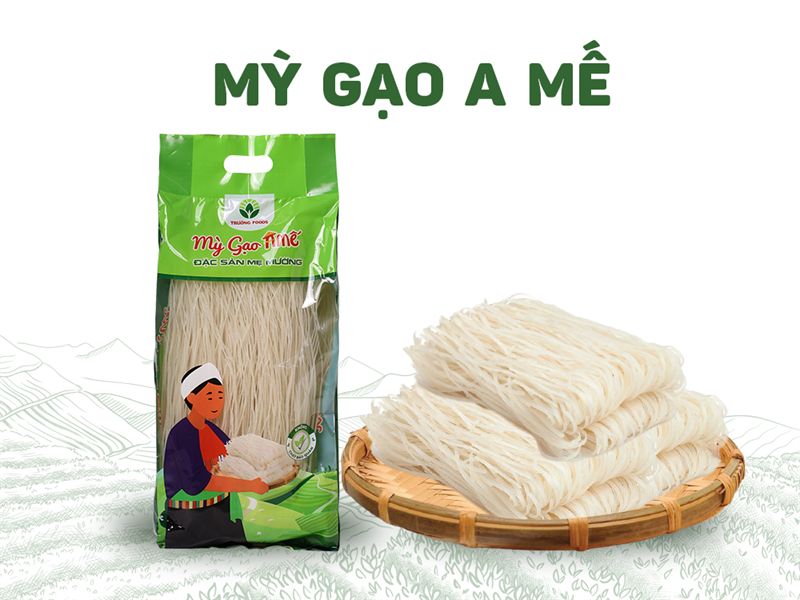 Mỳ gạo A Mế được chế biến hoàn toàn từ 100% gạo tẻ sạch Việt Nam nguyên chất, không pha trộn tạp chất, không sử dụng chất phụ gia hay chất bảo quản. Sợi mỳ trắng đục tự nhiên, dai mềm, ngọt bùi, không nát khi nấu. Thích hợp làm mỳ nấu, mỳ xào, mỳ trộn, nhúng lẩu,… Mộc mạc, nguyên chất, an tâm cho mỗi bữa ăn gia đình!