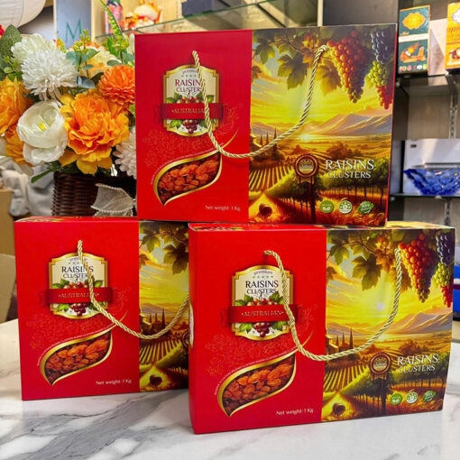 Trong xu hướng lựa chọn quà Tết đề cao sức khỏe và sự tinh tế, nho khô nguyên cành Thompson Sumucat Cluster được xem là món quà vừa sang trọng về hình thức, vừa giàu giá trị dinh dưỡng. Sản phẩm gây ấn tượng bởi những chùm nho khô nguyên cành tự nhiên, màu vàng óng đẹp mắt, thích hợp làm quà biếu cao cấp cho người thân, đối tác và gia đình trong dịp đầu năm.